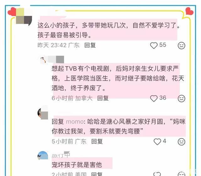 接着有不少人开始质疑马筱梅为了流量不顾孩子的学业,明知要期中考试了还带孩子出来玩。无原则的宠爱其实就是害了孩子,长此以往,孩子就养废了。