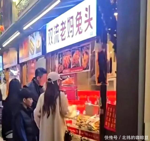 在宽窄巷子,一家人围在兔头店前,箖箖兴致勃勃地看爸爸汪小菲给他介绍当地美食。